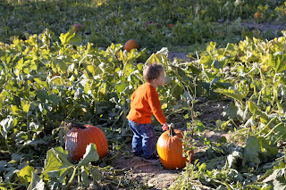 here he is at the pumpkin patch! we met up with Travis, Alisha and their kids to pick some out. The kids just ran around picking out their favorite pumpkin to take home. This year we picked out 3 for the boys and 1 for us.